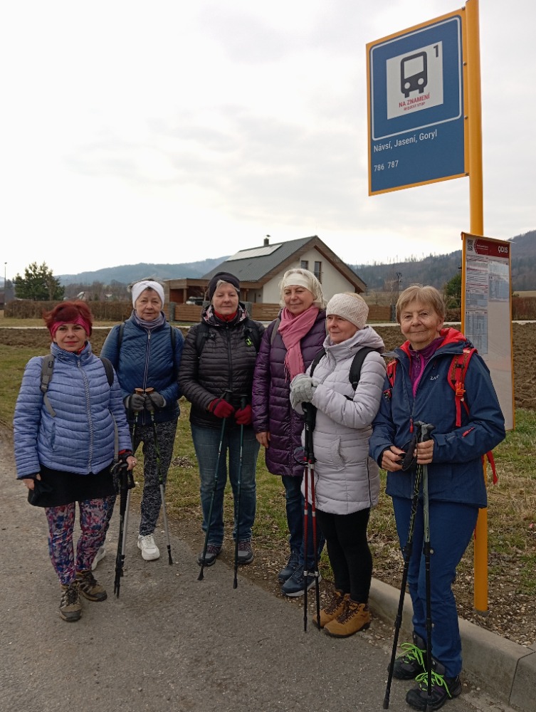 Za slunečného zimního počasí nás šlo opět jen 7 turistek. Trasa tentokrát s výhledy až na Vysoké Tatry! Délka trasy 17,1 km!