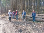 12 turistů kráčelo nenáročnou lesní cestou za krásného slunečného počasí