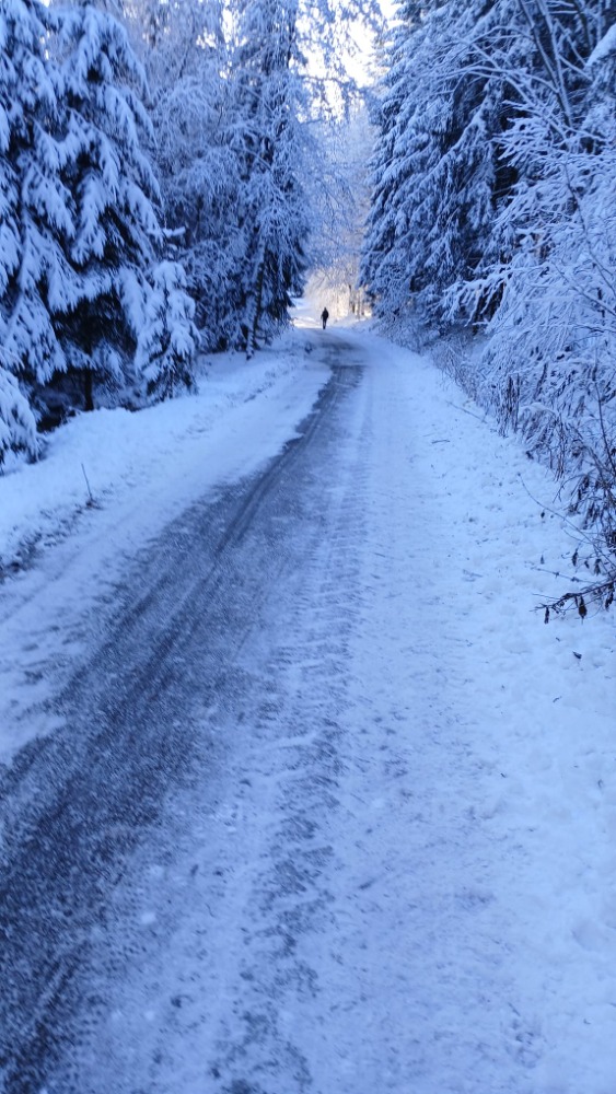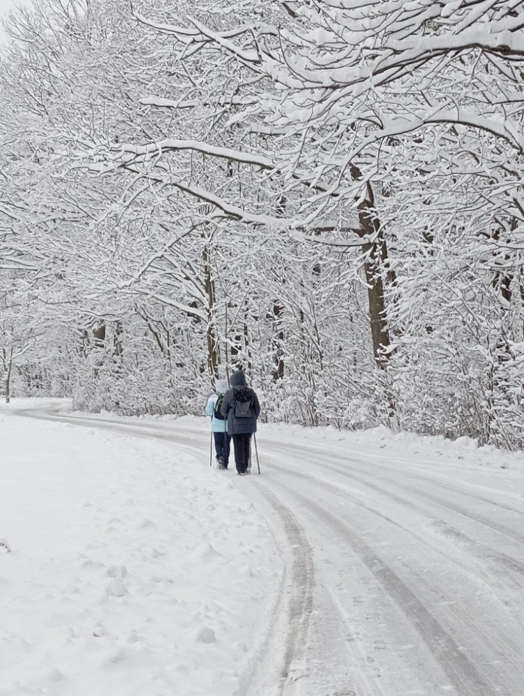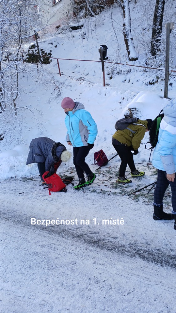 6 turistek, trasa 12 km po ledu, sněhu, listí, sluníčko, prošly jsme