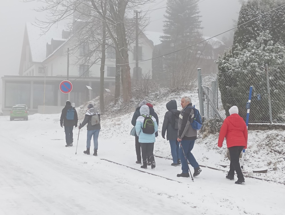 Zúčastnilo se 11 turistů zahrádkářů. I přes mlhavé a husté sněhové přeháňky, stálo to za to!